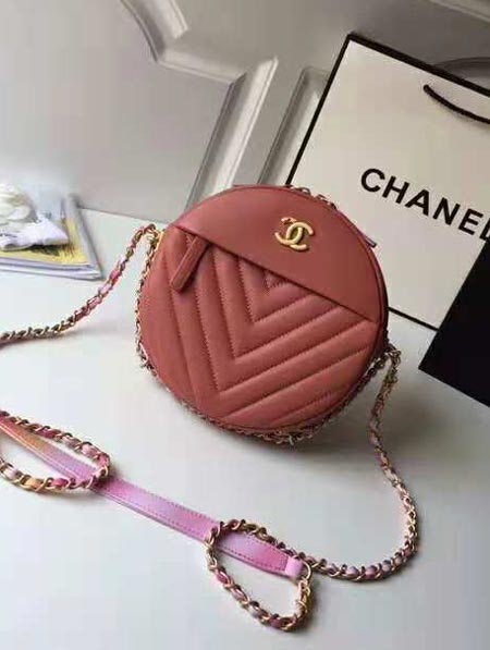 紅木色 A57110意大利品Chanel香耐爾新V線字圓餅包 飛碟包 復古造舊鎏金 超級可愛 超級Q 規格19cm 超級推存